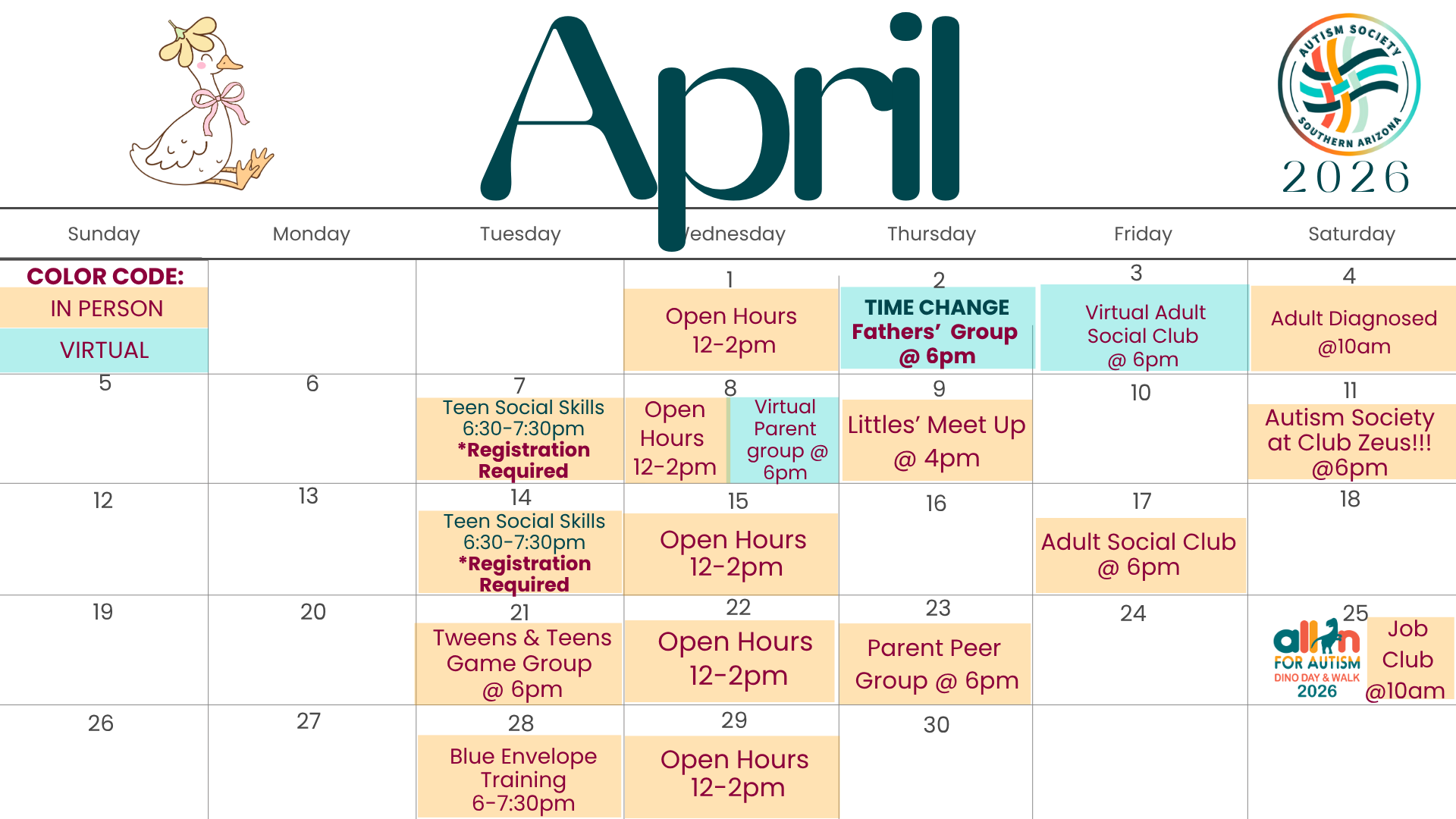 In Person Parent Peer Support Group meets monthly. The group will meet in person on the 4th Thursday of each month at 6 pm at ASSA Office.